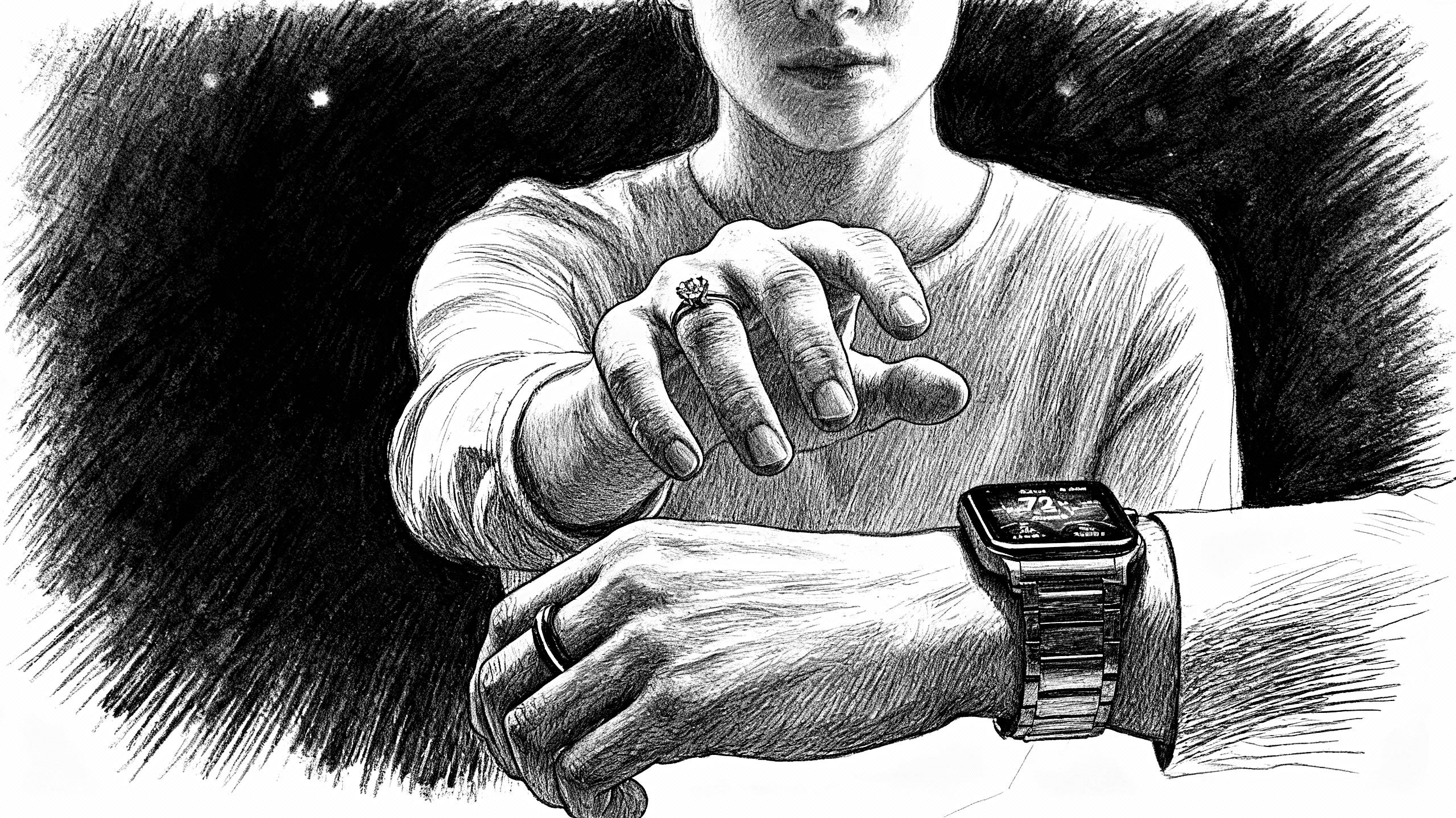 Antes de dormir, checou o anel inteligente. Passos: 14.872. Calorias gastas: 2.440. Tudo dentro da meta.